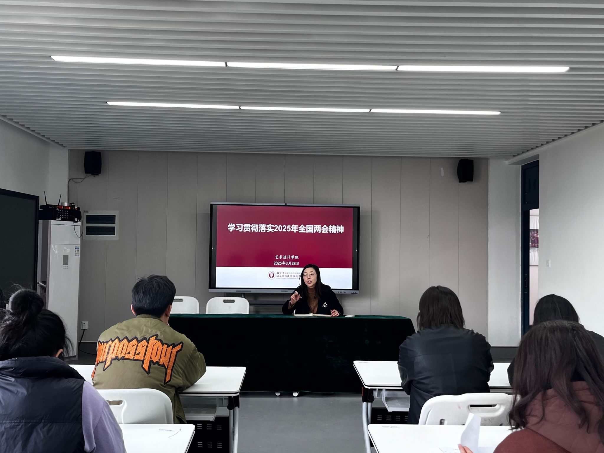 在学习交流环节,各支部党员代表结合自身工作学习实际,分享了对两会精神的学习感悟。数媒党支部书记汪智强分享了如何在新时代背景下,通过教学改革提升专业教育质量;家纺党支部书记王明星分享了在文化创意产业蓬勃发展中学院如何在国家文化战略中发挥积极作用;学生党员代表也表达了自己对未来走进设计行业的憧憬与期待以及作为新时代青年的责任与担当。