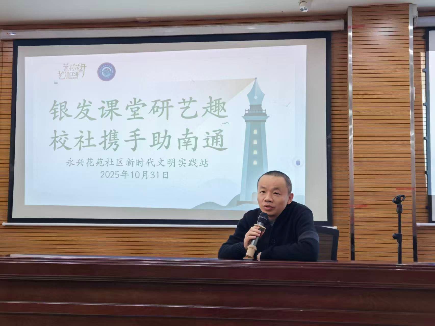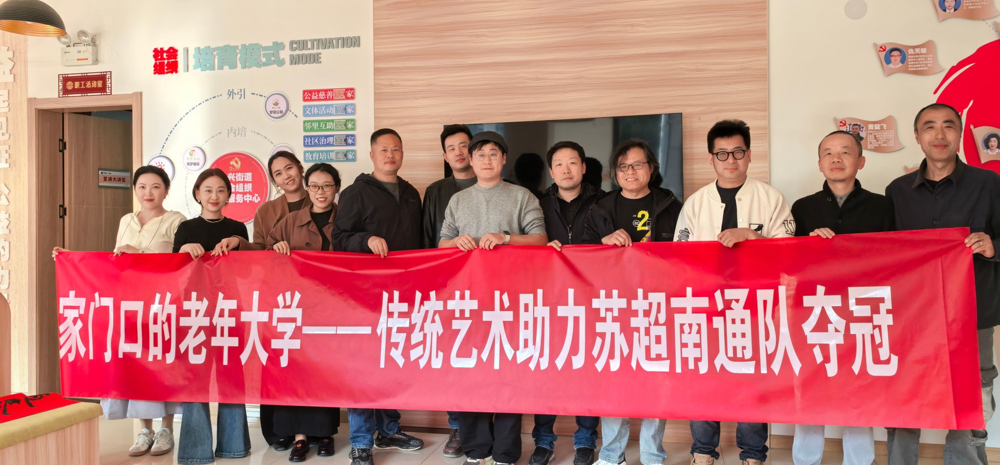 10月31日下午,艺术设计学院环艺党支部联合永兴街道花苑社区党支部共同举办了一场家门口的老年大学,旨在用传统艺术助力苏超南通队。环境空间团队全体教师、环艺党支部的党员代表、永兴街道花苑社区支部党员、居民老人与孩子们齐聚一堂,共同见证校社共建的暖心时刻。