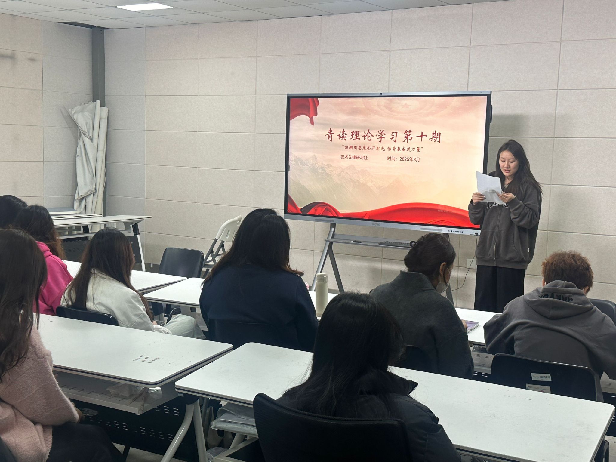 通过每次青春理论学习会,希望能够激发同学们的责任感和使命感,让他们在时代精神的引领下不断成长。未来,艺术先锋研习社还将继续开展形式多样的学习活动,为同学们提供更多学习和交流的平台,助力他们在思想和行动上不断进步,成为有理想、敢担当、能吃苦、肯奋斗的新时代好青年 。(艺术设计学院 高扬/文图 蔡媛媛/推荐 彭曼/审核)