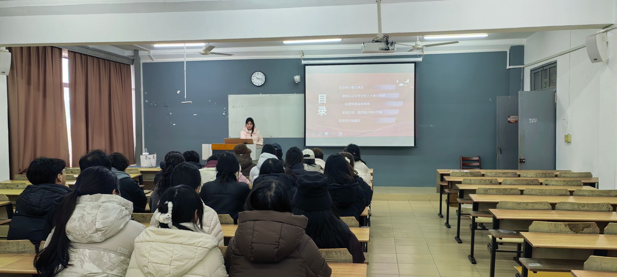 12月24日下午,先锋研习社在有恒楼226教室举办第十四期青读理论学习会,主题为“以设计之笔绘青春担当——学习贯彻党的二十届四中全会精神”。学院入党积极分子和优秀团员代表参与学习,辅导员高杨主持活动。