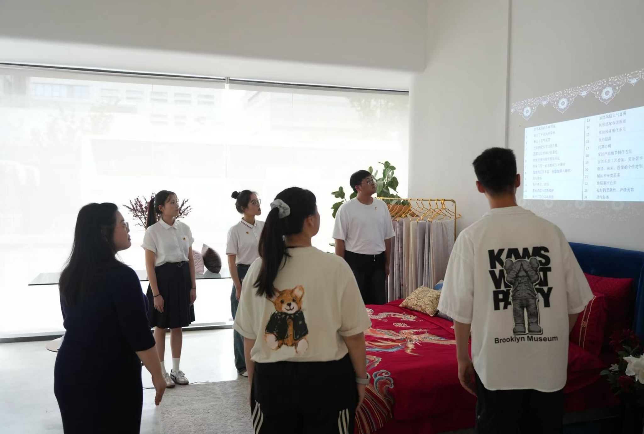 作为活动亮点之一,高思敏老师带领5名学生,走进玛奇朵家纺企业展厅开展“商铺场景化教学”。课程以婚庆家纺设计、新时代趋势为切入点,结合企业真实运营场景,动态演示产品开发与市场推广全流程。