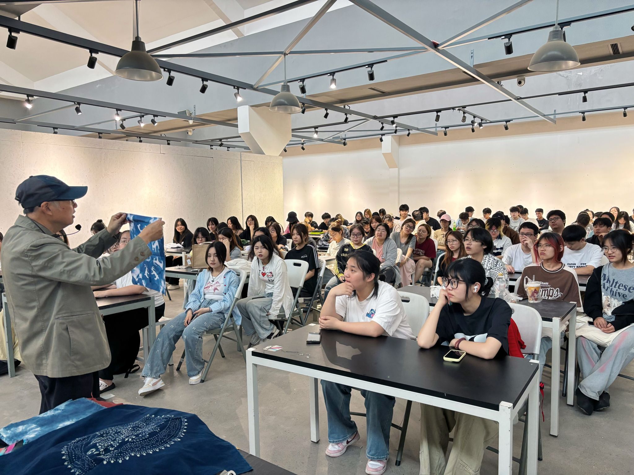 工作坊首日,龚建军以南通扎染的历史渊源为切入点,通过生动的讲解和珍贵的实物、图片资料,为同学们揭开了这项非遗技艺的神秘面纱。从扎染的起源、发展,到其独特的艺术风格和文化内涵,每一个细节都深深吸引着同学们的目光。龚老师亲自示范扎染和蜡染的基础操作流程,从布料的选择、扎结手法,到染料调配、浸染技巧,再到蜡染时的蜡液绘制与防染原理,都一一耐心讲解、细致演示。
