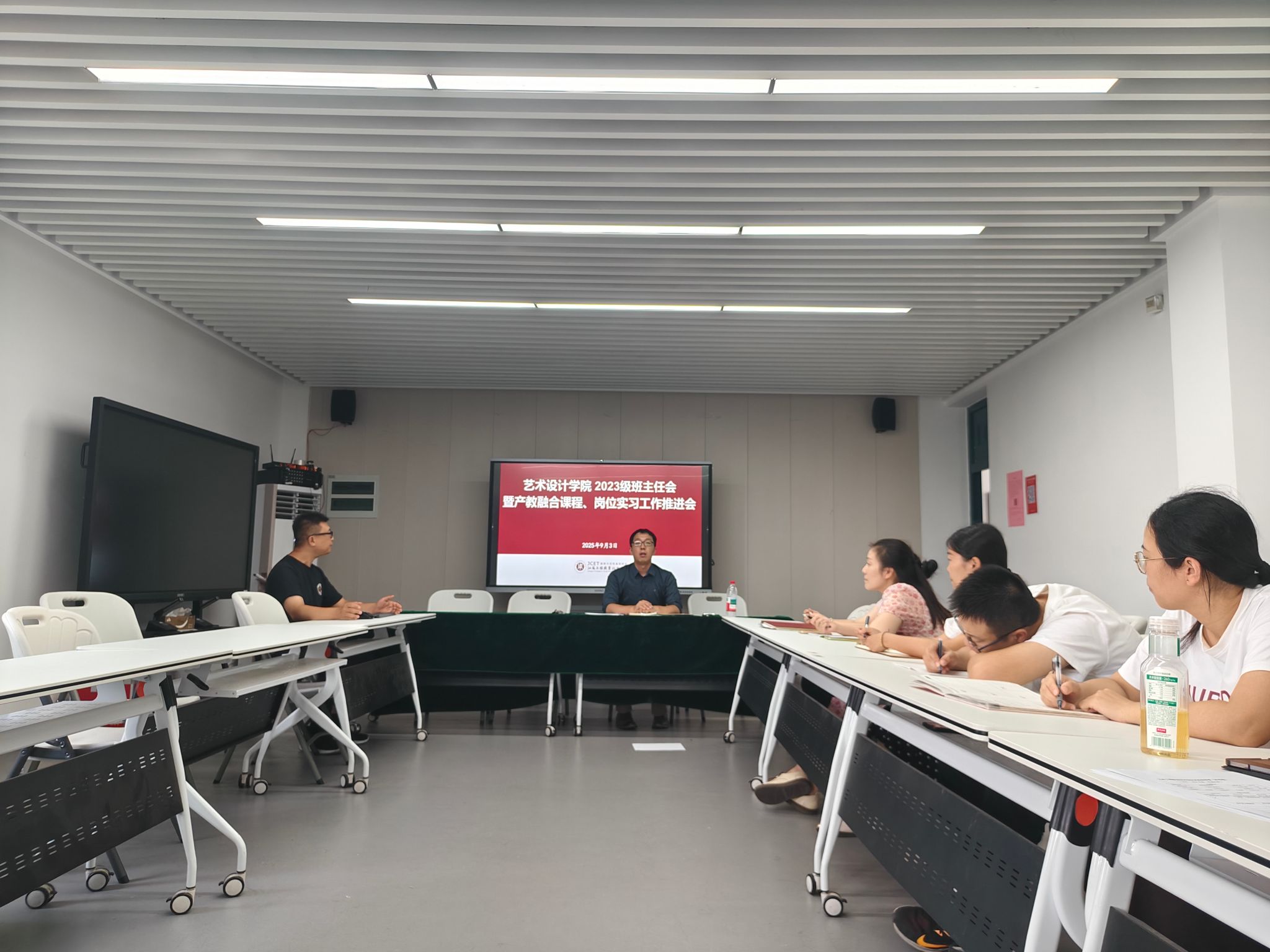 2025年9月3日,艺术设计学院在有恒楼222会议室召开2025-2026学年第一学期班主任培训会议,重点部署产教融合课程推进及2023级学生岗位实习工作。学院副院长汪智强、党总支副书记赵喜恒出席会议并讲话,2023级全体班主任参加会议。