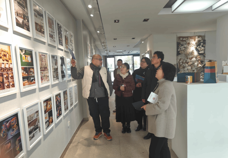 会谈结束后,任健带领访问团一行参观了艺术设计学院展厅。来宾对我校艺术设计学院师生的设计作品表示赞赏。双方就艺术类师生联合办展、联合参赛等方向提出构想。