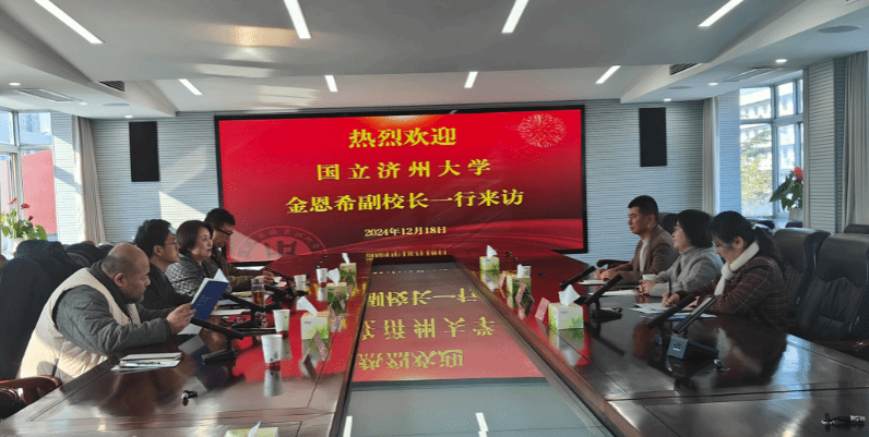 12月18日,韩国国立济州大学副校长金恩希一行3人访问我校。我校副校长郭江峰、国际教育交流中心主任吉利梅、艺术设计学院院长任健、艺术设计学院副院长汪智强等接待了代表团一行。