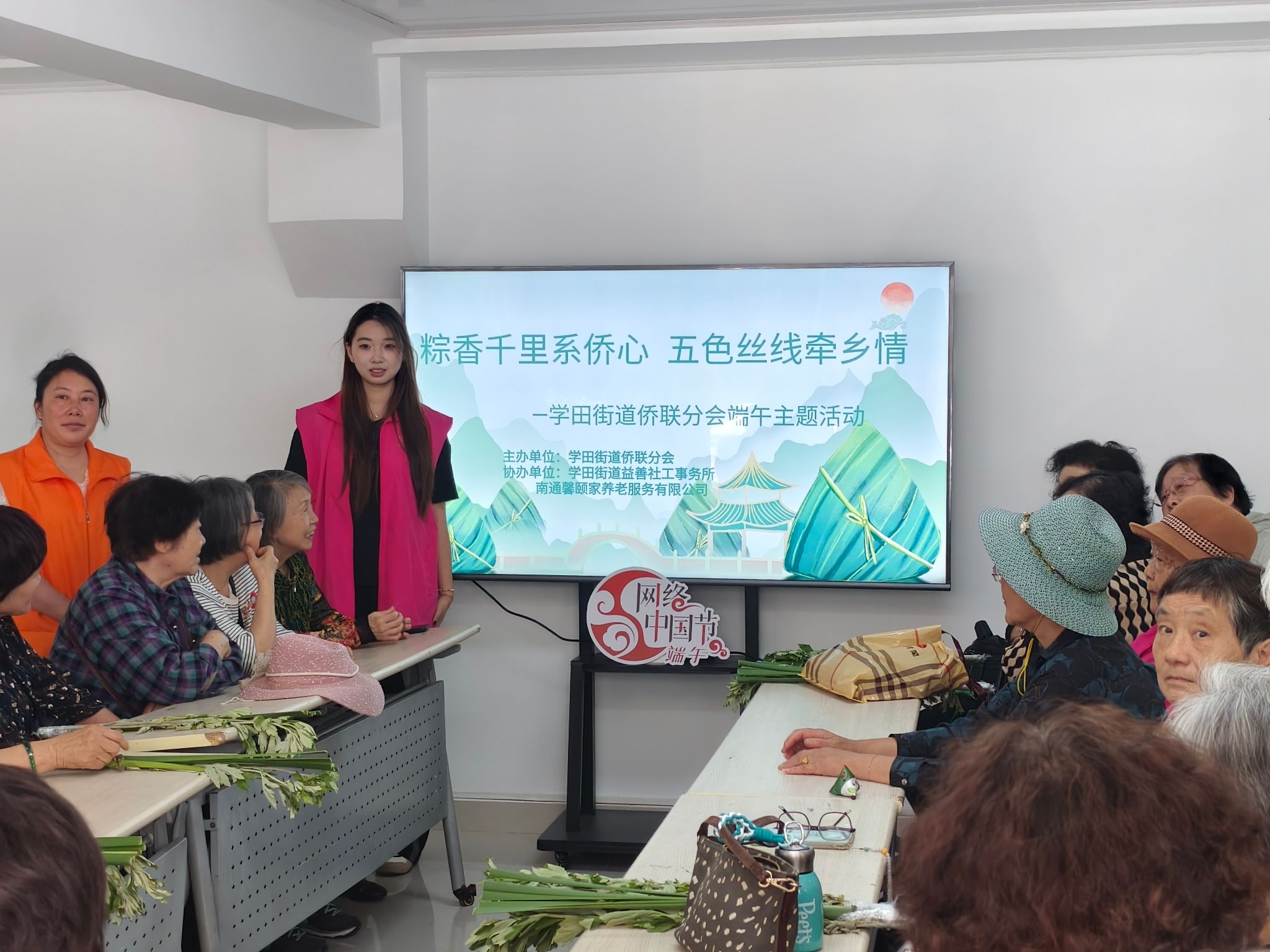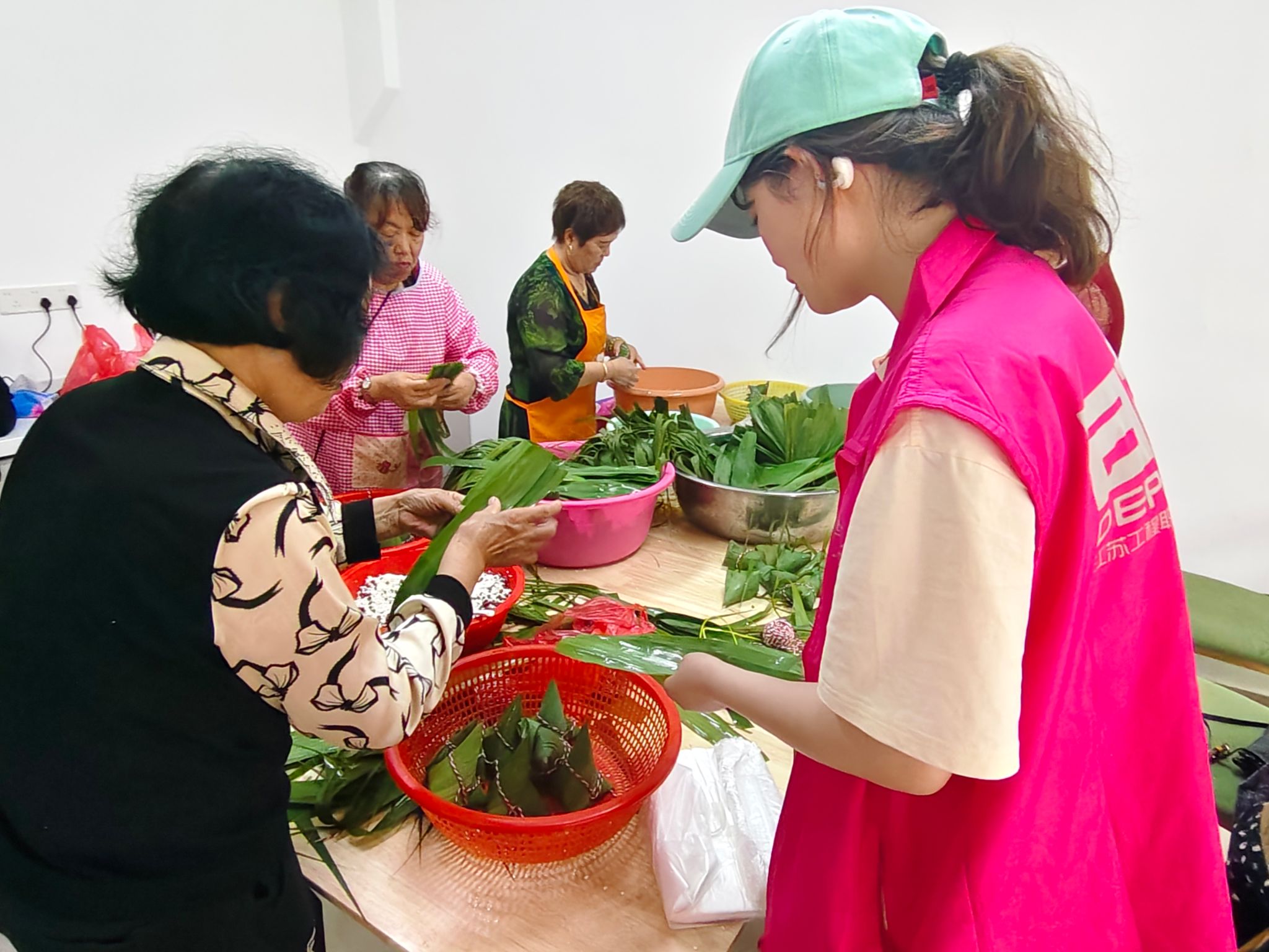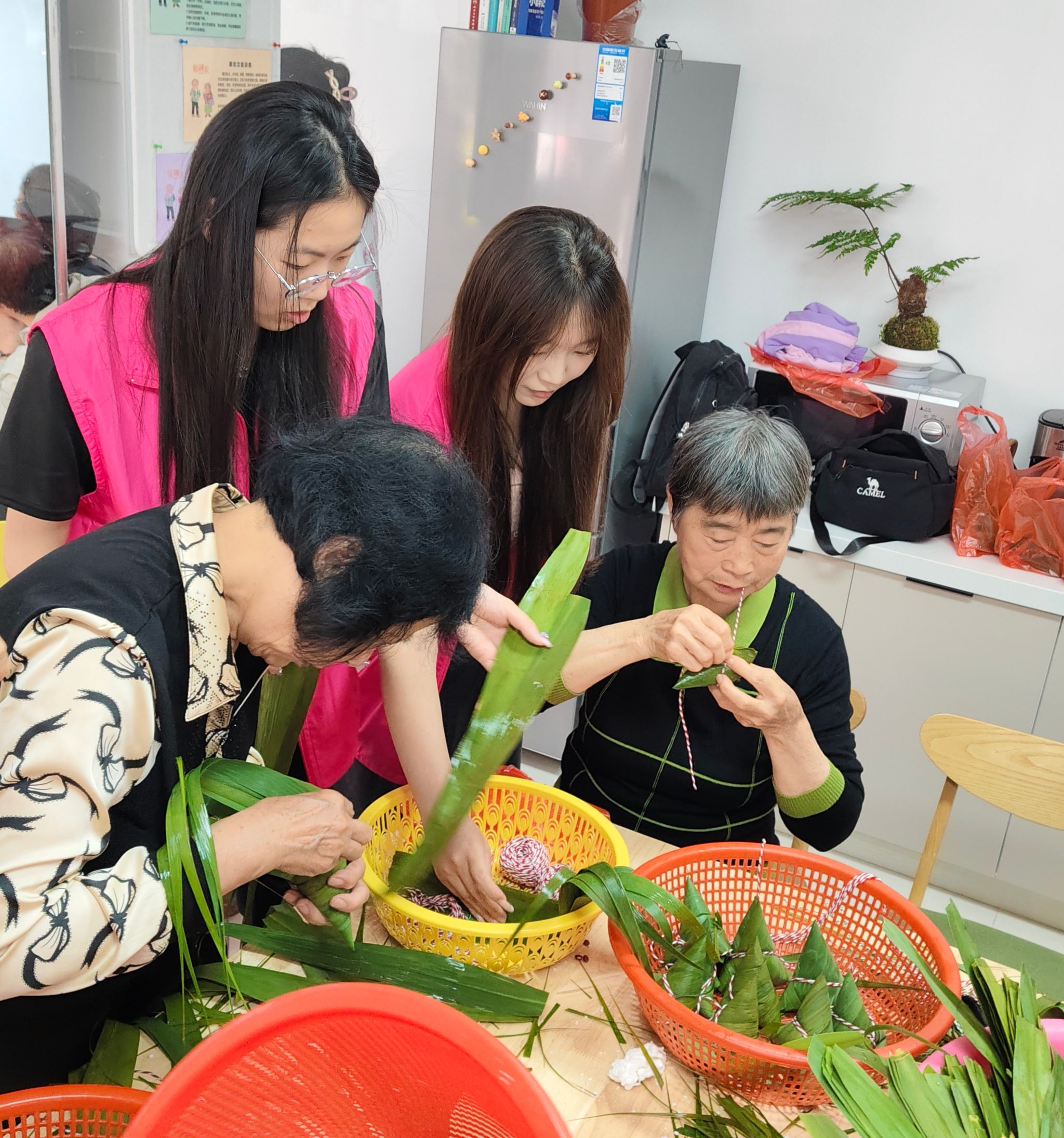 5月25日下午,艺术设计学院传统文化志愿服务团走进学田街道紫荆花社区,参与“端午粽香飘四海 五色丝线缠吉祥”侨眷联谊活动,与社区居民共度端午佳节。