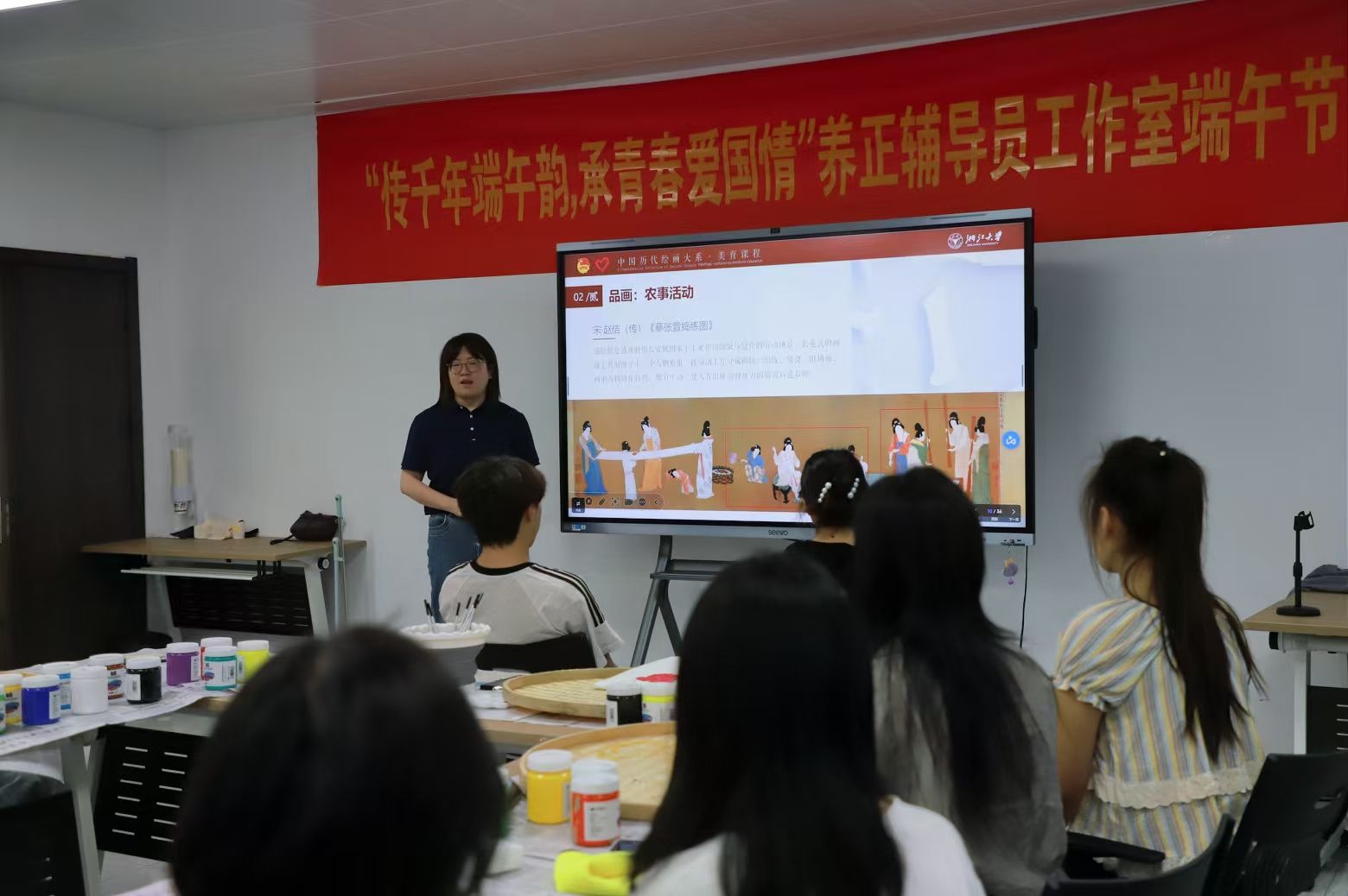 5月31日上午,校养正辅导员工作室联合艺术设计学院、学生社区管理服务中心举办“美育实践绘农耕,丹青巧传端午情”美育实践活动。校党委副书记丛彬彬,宣传部部长王希颖,学工部部长徐明、副部长刘宇,艺术设计学院党总支副书记赵喜恒出席活动。
