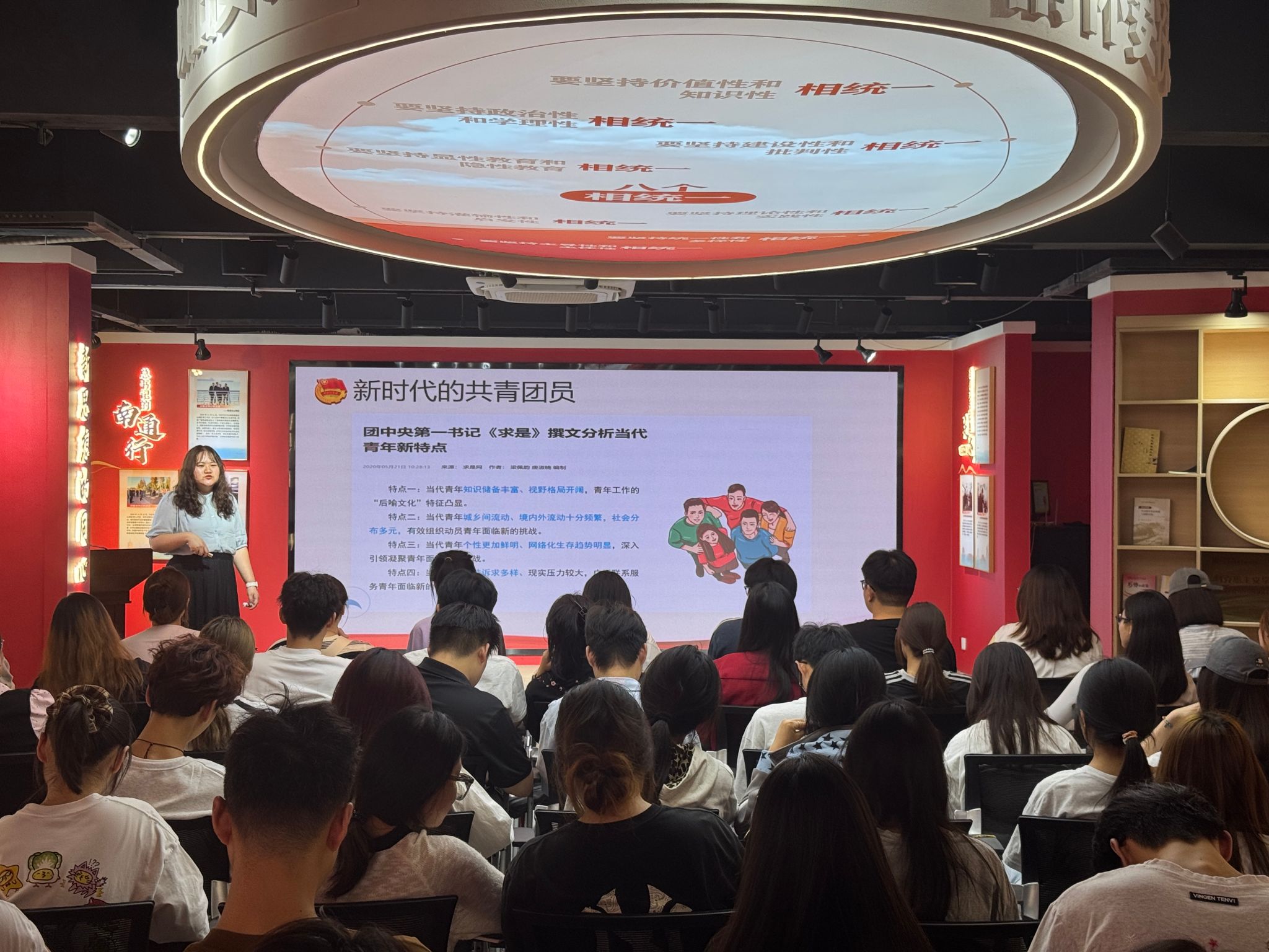 为深入推进青年学生党史学习教育,引导广大团员青年深刻感悟党的百年奋斗历程与伟大成就,汲取精神力量,坚定理想信念,10月23日,以“凝忆百年党史 话时代荣光”为主题的党史学习教育主题团课。马克思主义学院张驰越老师担任主讲,全体入团积极分子参加。