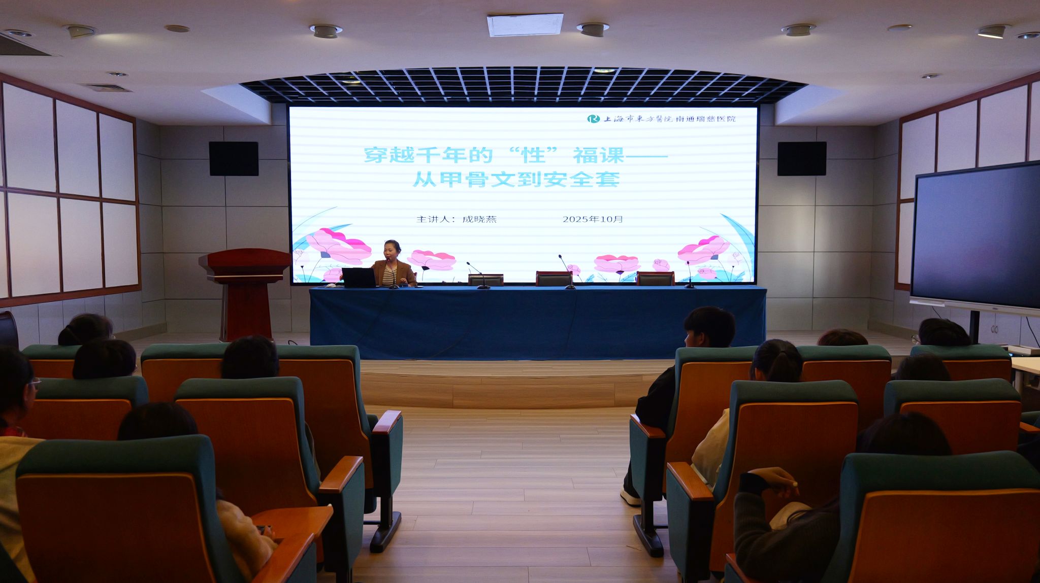 2025年10月22日下午,一场别开生面的艾滋病防控知识讲座在强毅楼12楼演播厅举行。本次活动由后勤与基建处与艺术设计学院联合举办,特邀南通瑞慈医院成晓燕医生主讲,旨在提升2025级新生的健康意识与自我保护能力。后勤与基建处副处长卢蓉涛、艺术设计学院党总支副书记赵喜恒、辅导员许照绮、医务室医生赵飞燕与104名新生共同参加。
