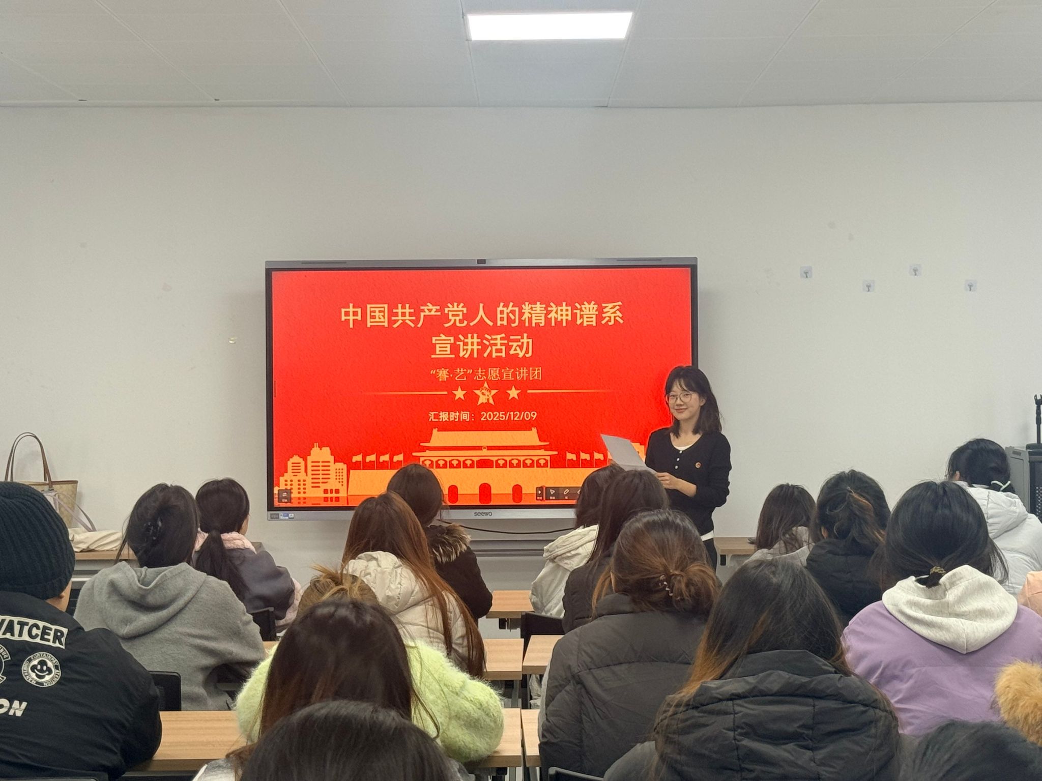12月9日,由数字与创意设计学院党总支指导,院“謇·艺”志愿宣讲服务团组织的“中国共产党人精神谱系”宣讲活动,在“一站式”学生服务社区正式启动并举行宣讲。此次活动是学院坚持党建带团建、党团一体化建设的生动实践,旨在以党建引领团建,通过青年视角与话语体系,生动阐释党的宝贵精神财富,推动青年学生在红色精神的熏陶中成长成才。学院70余名师生代表参与。