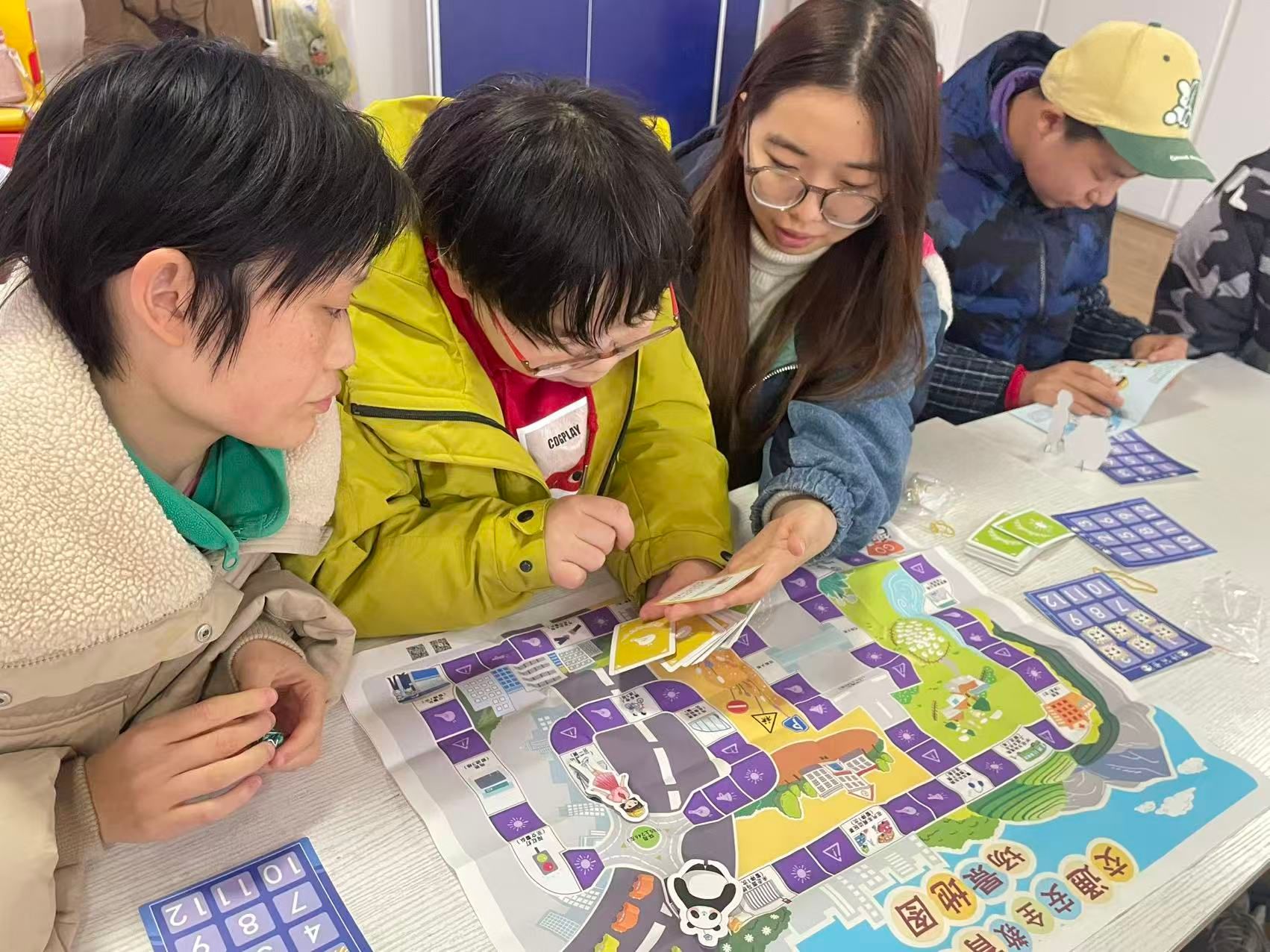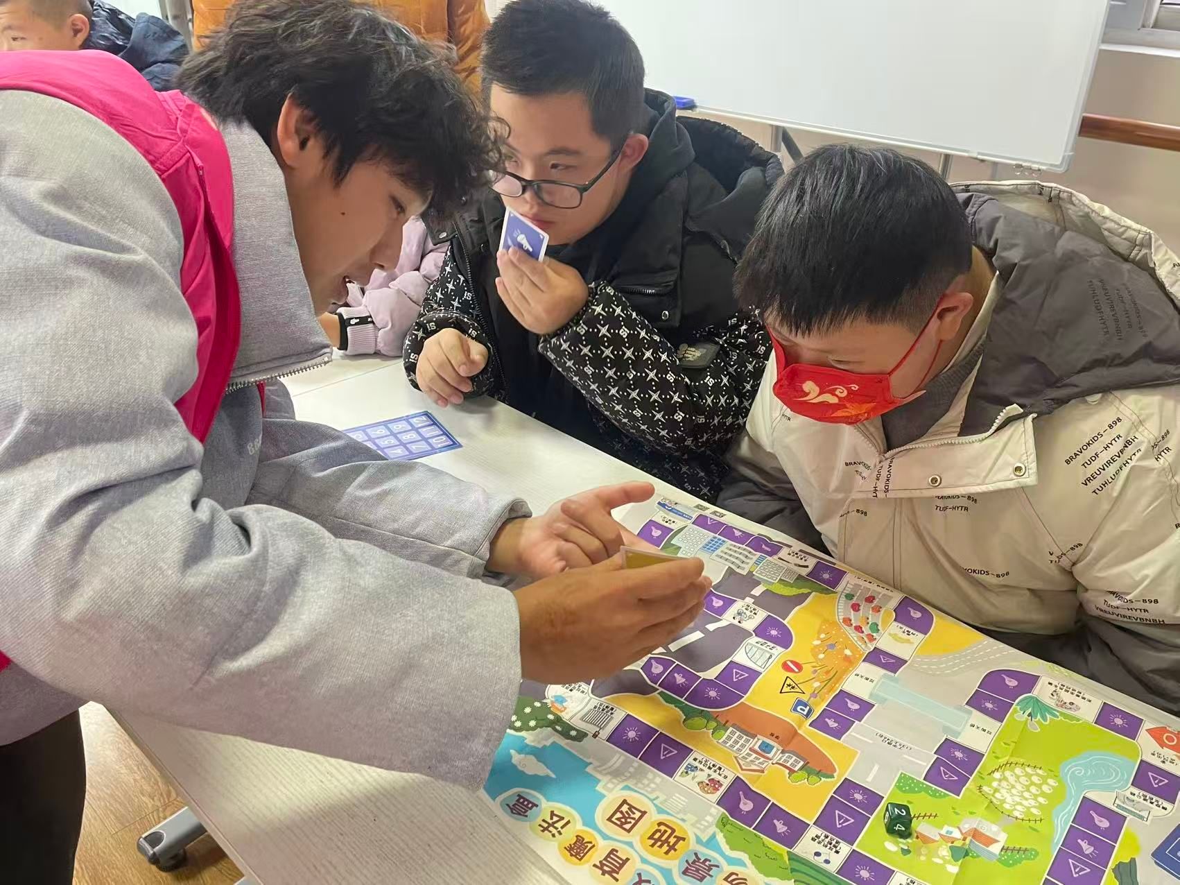 活动现场,志愿者们用通俗易懂的语言,结合生动形象的图片和案例,深入浅出地讲解了日常出行中容易被忽视的交通安全细节,如过马路要走斑马线、看红绿灯,乘车要系好安全带等。为了让大家更好地理解和掌握知识,志愿者们还带来了桌游教学“交通安全教育魔法盒”。在互动过程中,志愿者指导孩子们积极投入,通过游戏的方式,轻松记住了各种交通安全规则。活动尾声,全体人员共同唱响交通安全儿歌《小细节·大安全》,欢快的旋律、朗朗上口的歌词,将交通安全知识进一步深植在大家心中。