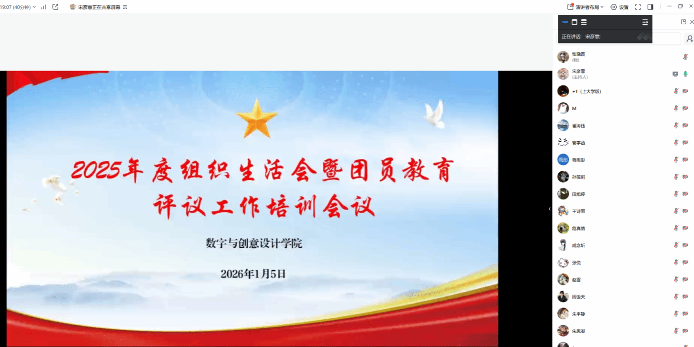 为规范推进2025年度团组织生活会与团员教育评议工作,明确任务要求与流程标准,1月5日,学院团总支召开专题线上培训会。会议由团总支书记张晓霞主持,全体团干部及骨干团员参加。