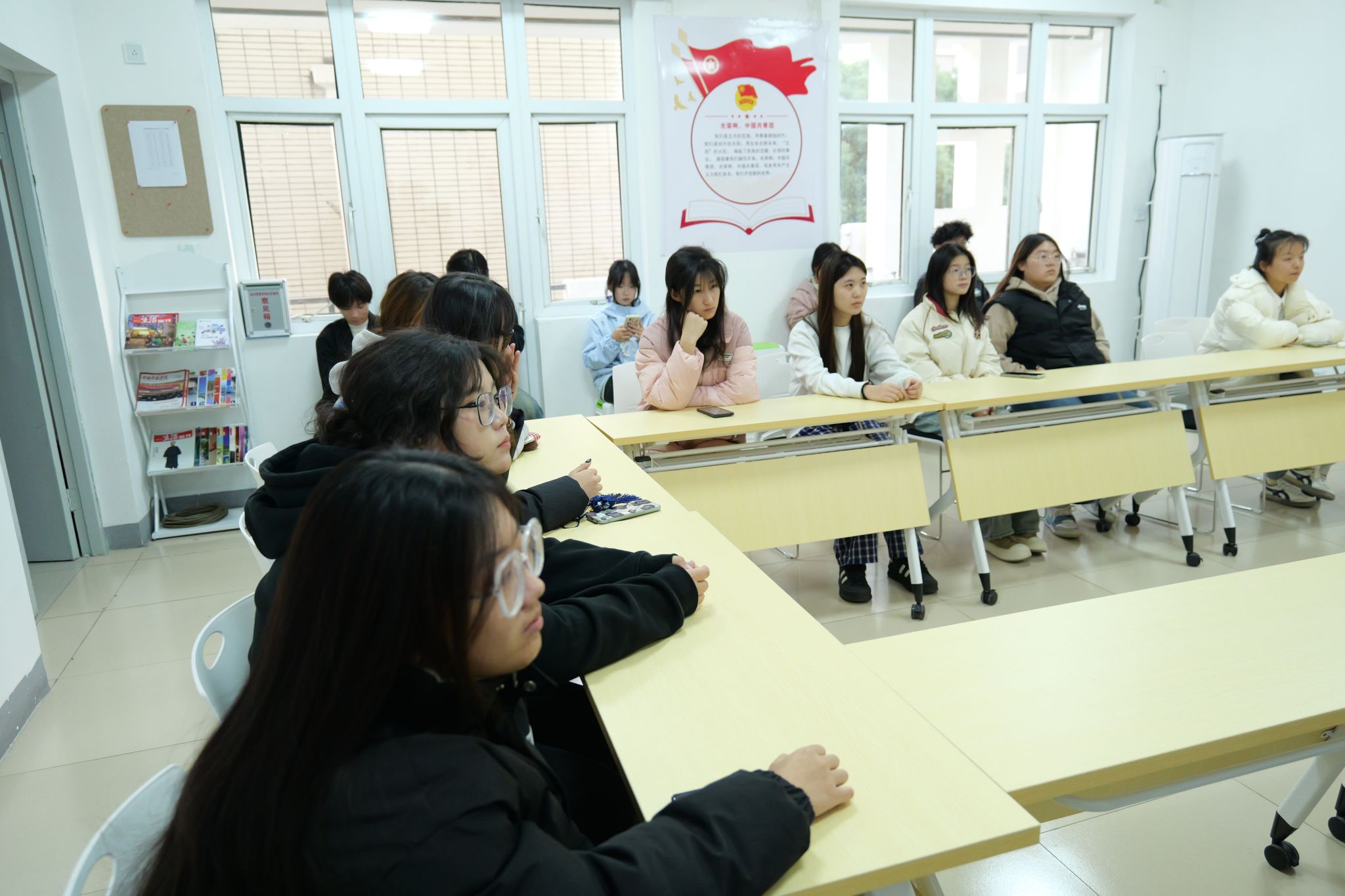 窦琪首先列举了近期学院内发生的几起违纪案例,并深入剖析了这些违纪行为产生的原因及造成的负面影响。她强调,遵守学院规章制度是每一位学生的基本义务,也是维护学院正常秩序和良好风气的必要保障。随后,窦琪详细解读了学院关于课堂纪律、宿舍管理、考试规范等方面的规章制度,并结合具体案例,对制度的细节内容进行了细致的讲解。她鼓励同学们认真学习学校规章制度,将制度内化于心、外化于行。活动现场,同学们认真聆听,积极参与互动,就一些具体问题进行了深入交流,现场气氛热烈。