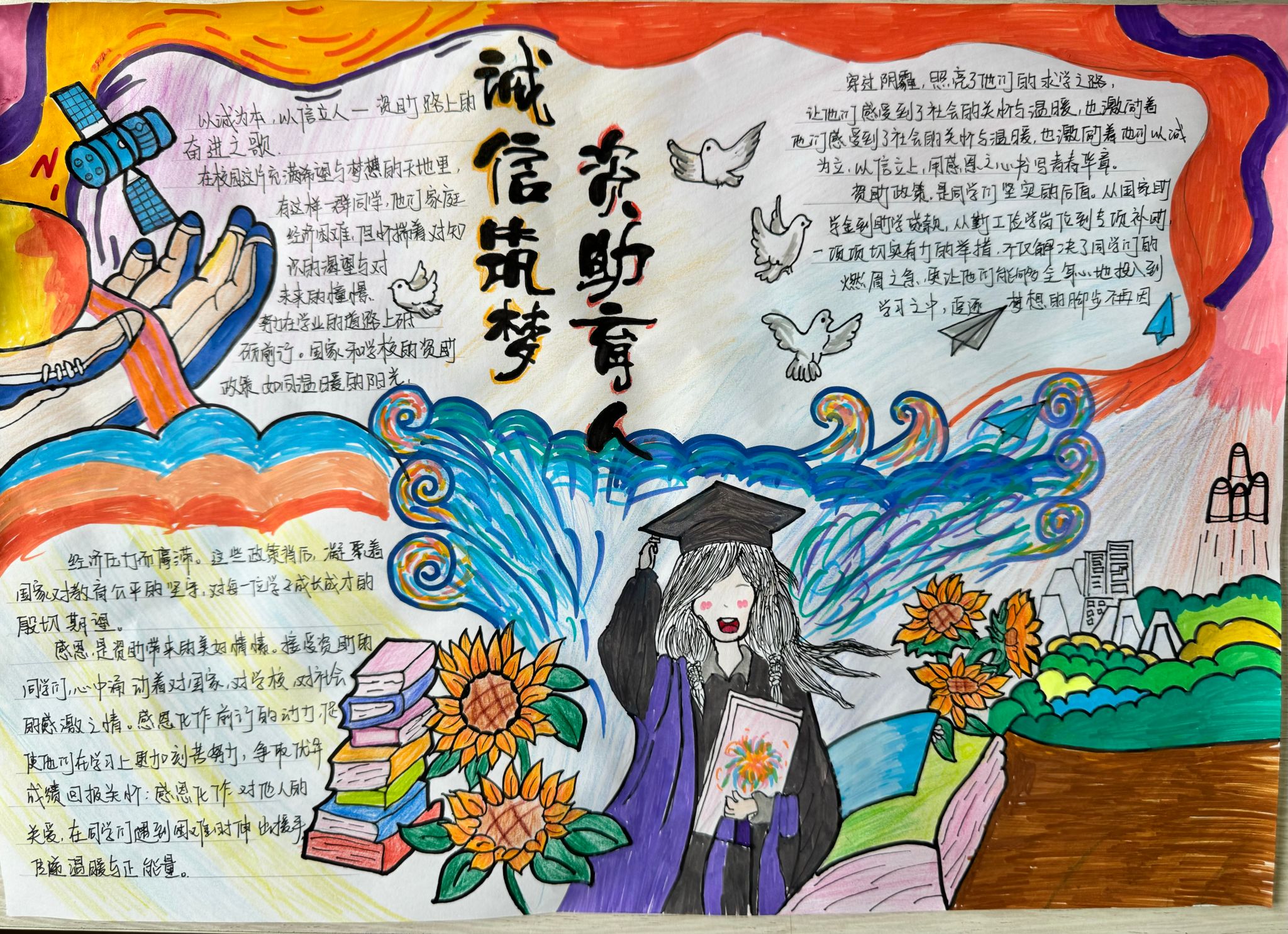为深入推动学生资助诚信教育,艺术设计学院于6月1日至15日面向全体家庭经济困难学生,精心组织开展了“以诚为本 以信立人”主题手抄报设计征集活动。