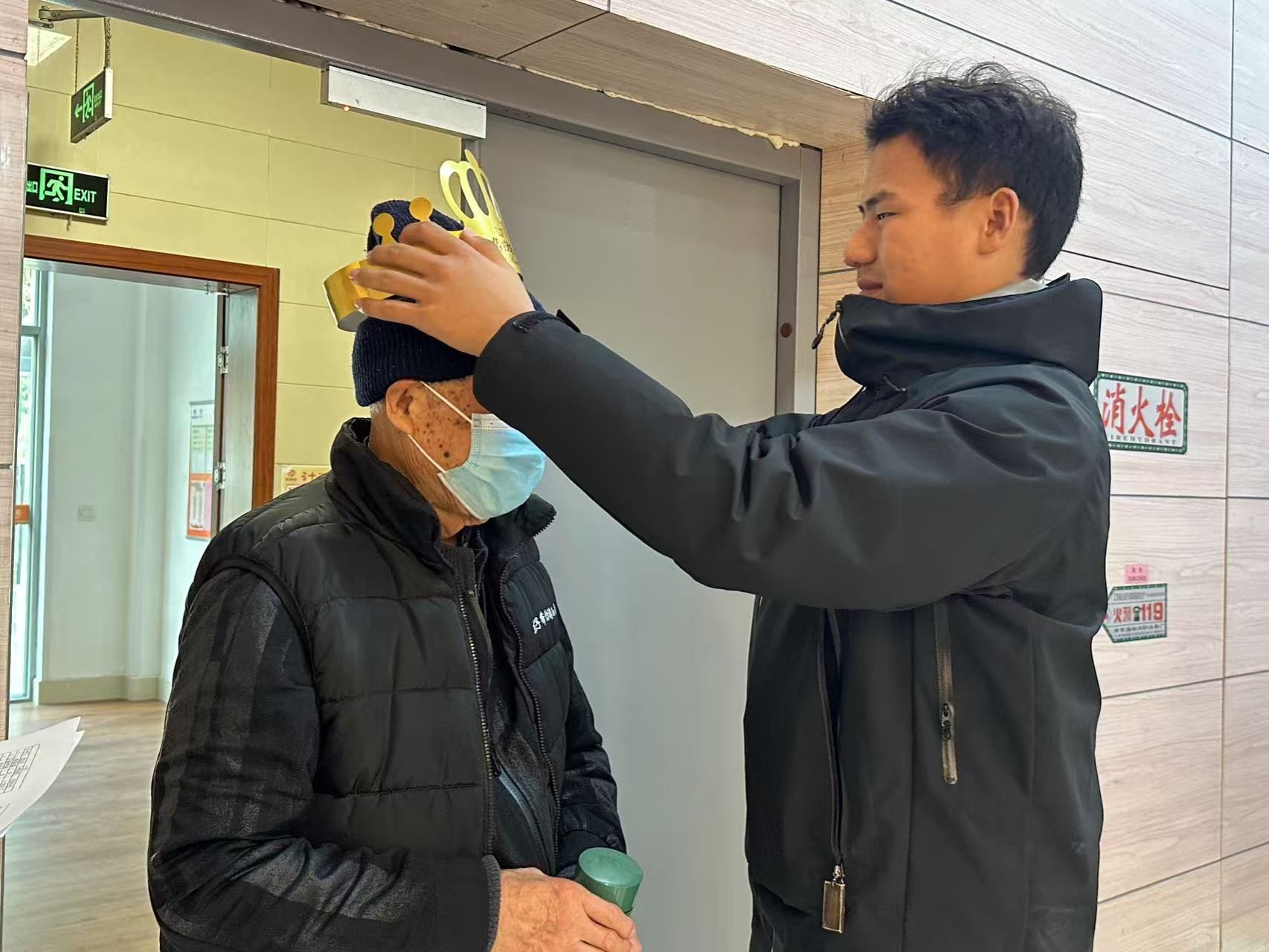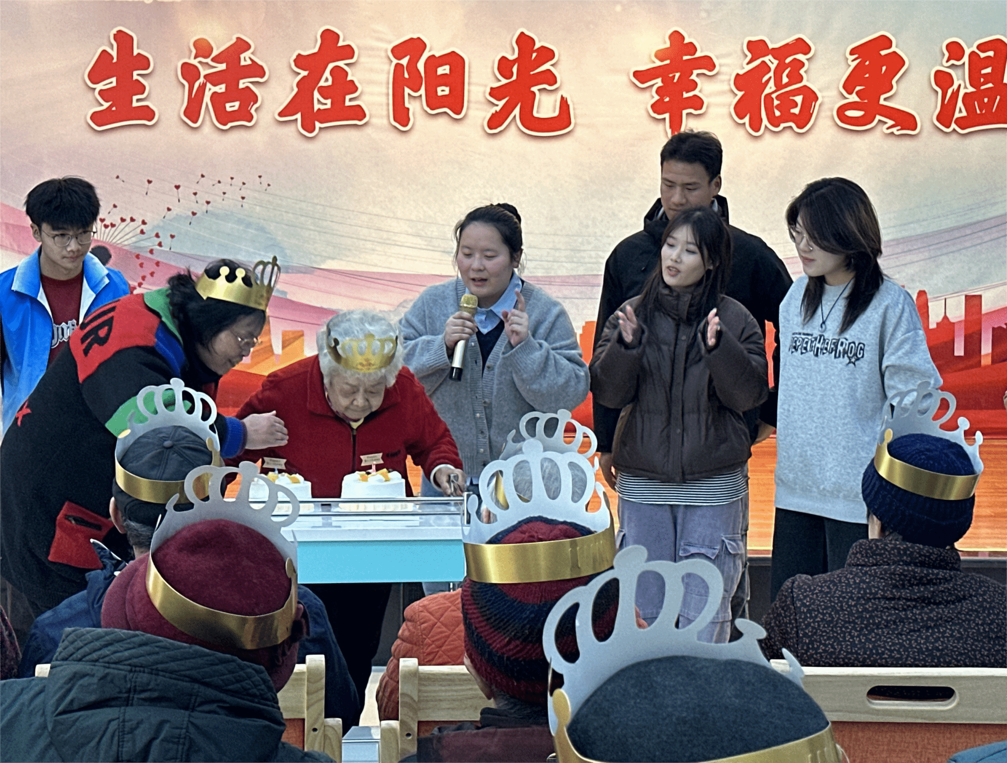 12月26日下午,一场温馨而充满活力的生日会在阳光养老院热烈举行,大学生心理协会艺术设计学院分会的志愿者们带着精彩的节目,为老人们送上了一份特别的关怀与祝福,让平日宁静的养老院洋溢着欢声笑语和浓浓的温情。