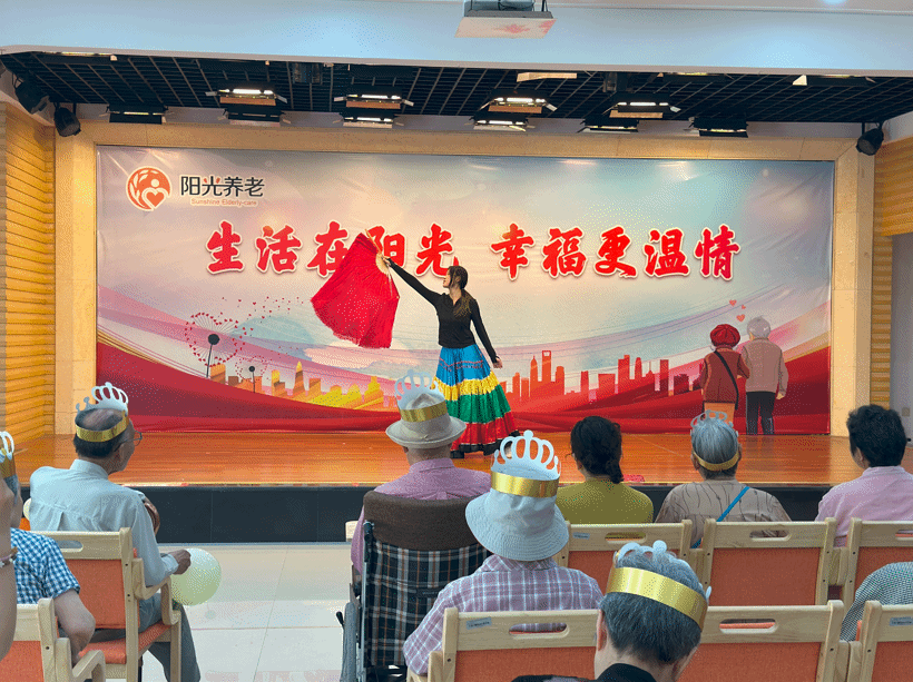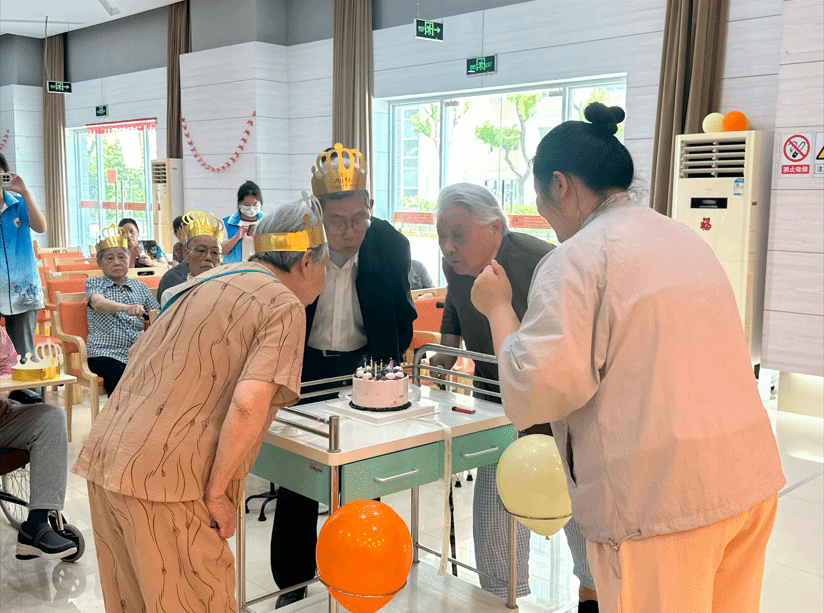 活动中,志愿者们带来三个精彩节目。舞蹈《九州同》以矫健舞姿和激昂音乐点燃现场,赢得老人们阵阵掌声;歌曲《宁夏》的舒缓旋律让老人沉浸在美好回忆中;舞蹈《日不落》的欢快节奏将气氛推向高潮,老人们纷纷鼓掌、哼唱,现场一片欢乐。节目结束后,工作人员推出生日蛋糕。大家共同为当月生日的老人唱生日歌、送祝福。老人们许愿、吹蜡烛,脸上洋溢着幸福笑容,现场充满温暖与爱意。