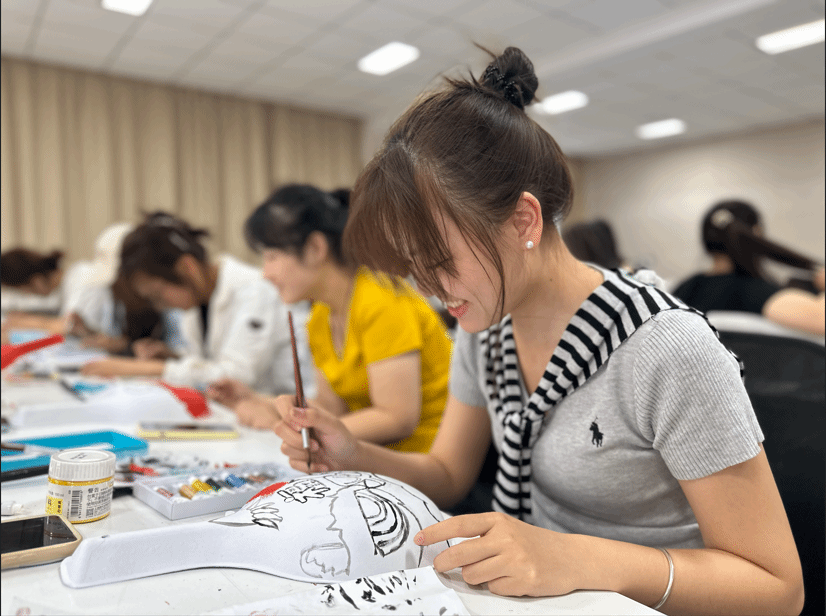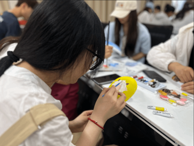 本次活动以“绘心绘色,释放压力”为主题,活动现场,同学们用画笔在马勺上自由创作。马勺绘画不仅是一种传统艺术形式,更是一种表达内心情感的方式。参与者通过选择不同的颜色和图案,将自己的情绪转化为独特的艺术作品,体验了一次别开生面的“艺术疗愈”。