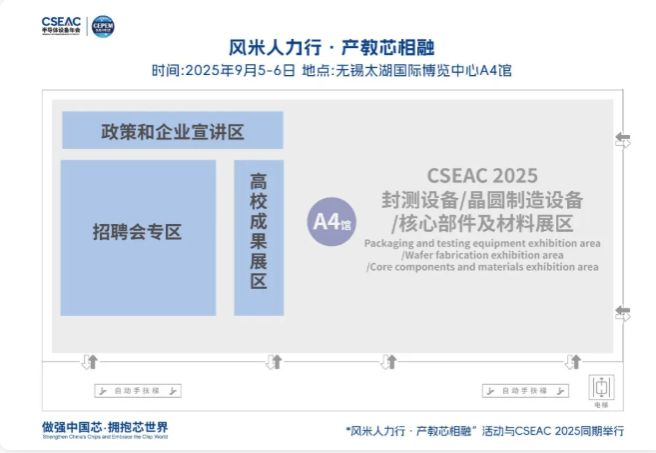 第十三届半导体设备与核心部件及材料展(CSEAC 2025),由中国电子专用设备工业协会半导体设备分会主办,将于2025年9月4日至6日在无锡太湖国际博览中心盛大启幕。展会期间,大会联合风米网将首次开设“风米人力行·产教芯相融”人才招聘专场。100家半导体知名企业现场发布招聘需求,面向高校、高职、技师学院、技校应届毕业生,以及技能和科技人才技,提供半导体工艺、设备研发等数千个岗位。