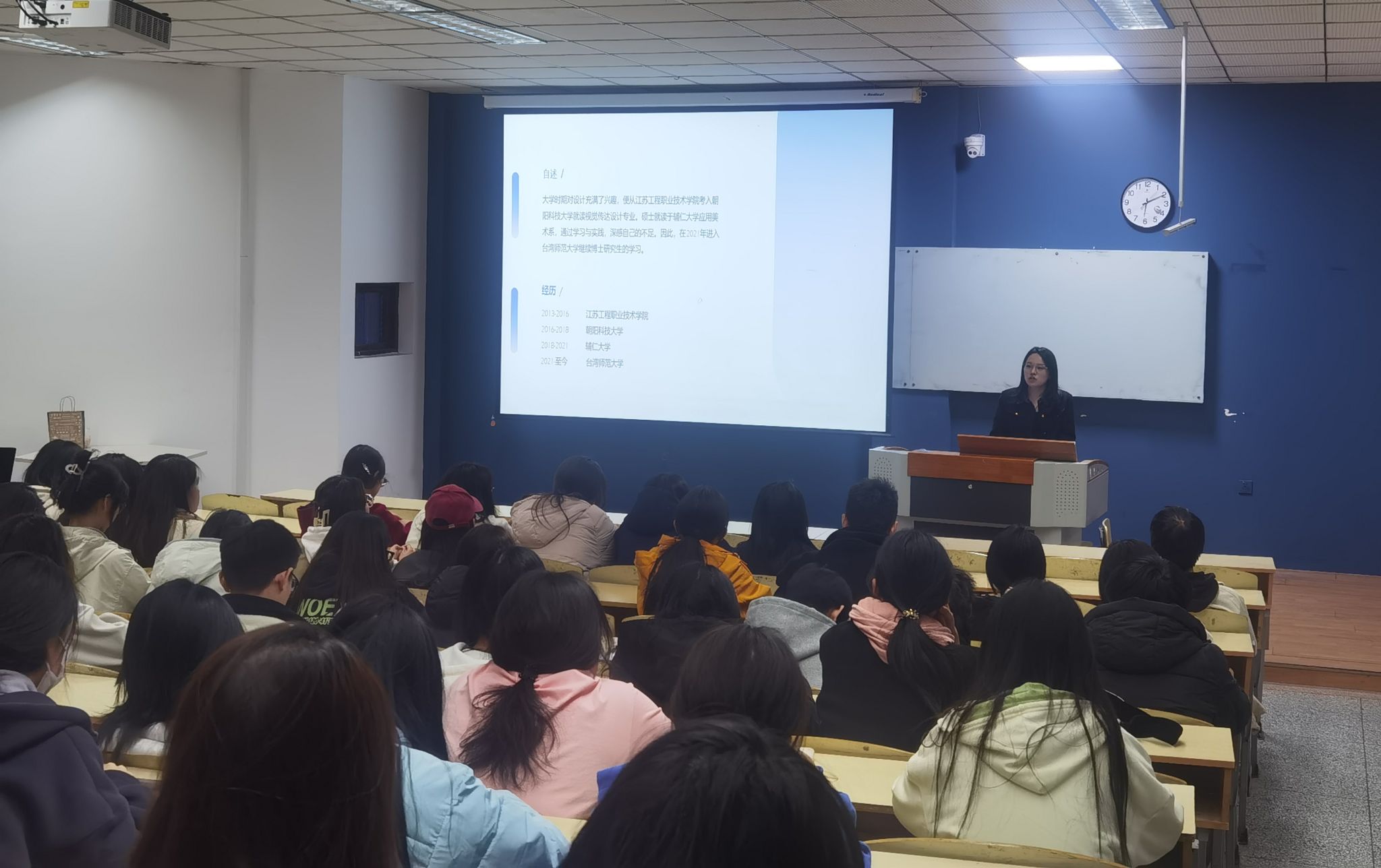 4月2日下午,艺术设计学院在致用楼200教室举办“艺·美”校友讲坛。活动邀请了学院2016届优秀校友、台湾师范大学在读博士李冬淳到校分享成长经历,2023级、2024级学生代表参加了活动。