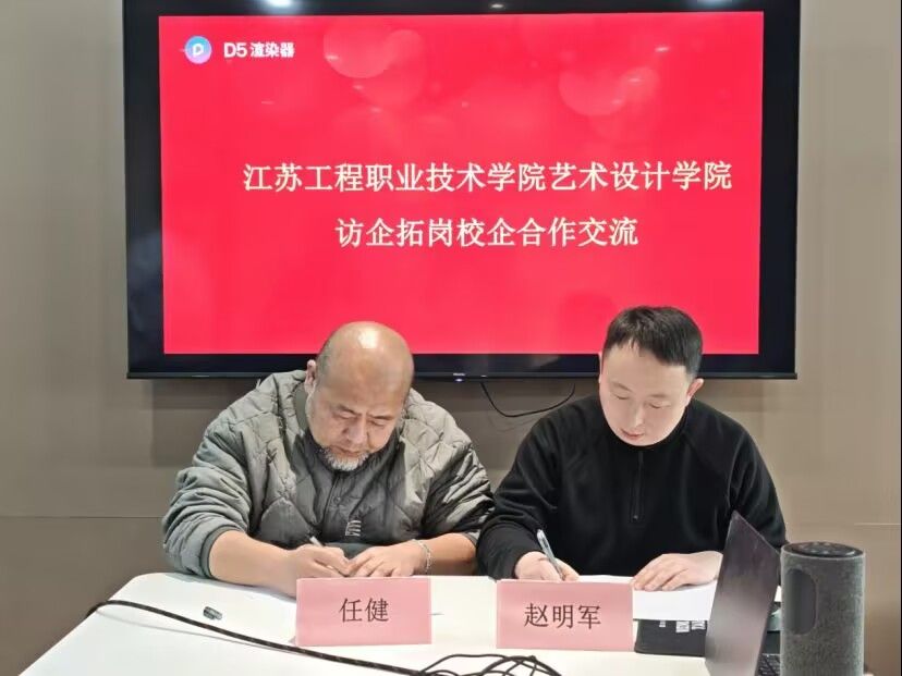 交流会后,双方签署了校企合作协议。任健院长向D5公司高校事业部总监张学栋颁发我院环境艺术设计专业指导委员会委员证书,并向企业赠送我院校企合作示范性成果——非遗青瓷文创产品“鸿运当头杯”。
