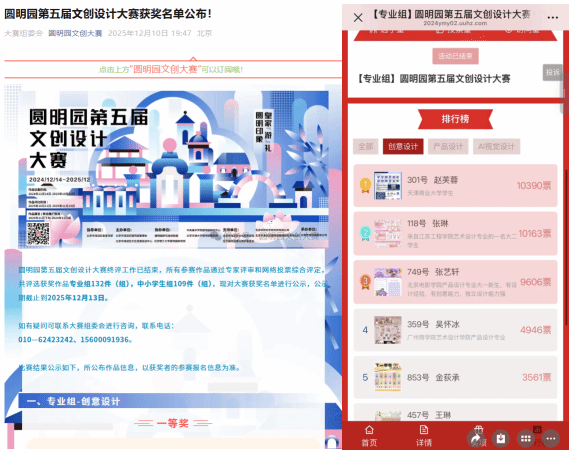 近日,第五届圆明园文创设计大赛传来捷报,数字与创意设计学院艺术设计专业张琳同学的作品《绣荷·锦莲》(指导教师李楠)斩获创意组银奖,实现学院在该赛事的历史性突破。